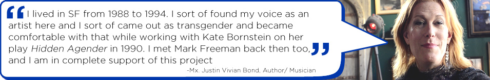“gives a historical and current context to transgender individuals’ harrowing experiences, one that also transcends specific geographical areas.” “We at the San Francisco Police Department utilize Mark Freeman’s excellent film Transgender Tuesdays as a training aid in our transgender interactions class. The response from recruits has been favorable and had lead to great discussions after. I find it invaluable in relating real stories. This gives a historical and current context to transgender individuals’ harrowing experiences, one that also transcends specific geographical areas.”